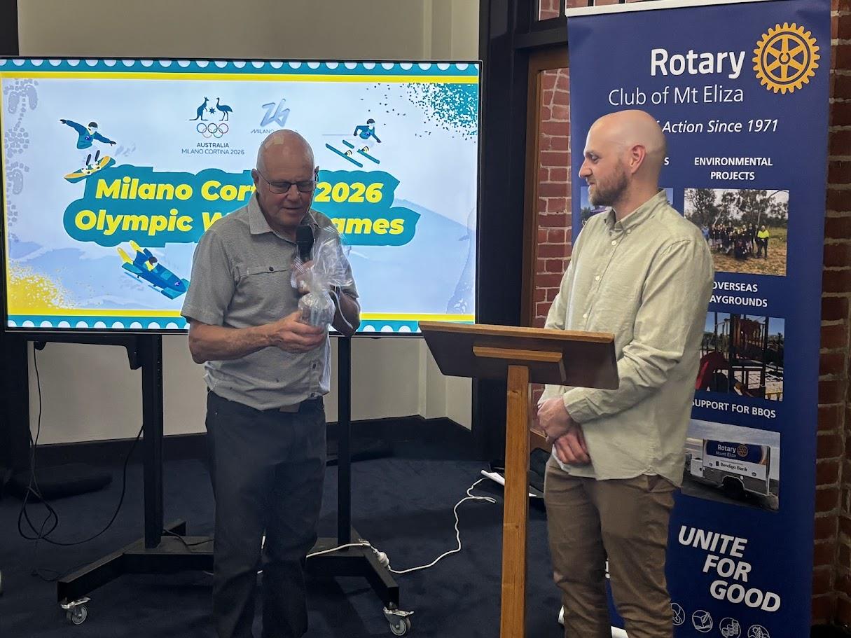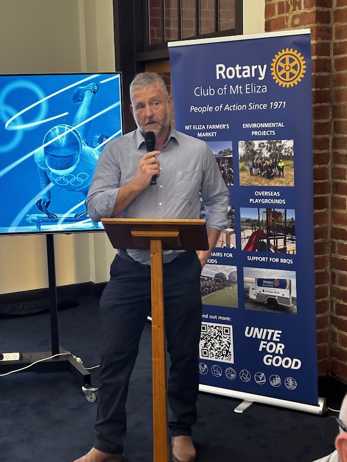 At a recent meeting, the Rotary Club of Mount Eliza was given a fascinating behind-the-scenes look at the Winter Olympic Games by guest speaker Lachlan Heron, a physiotherapist working at the highest level of international sport.