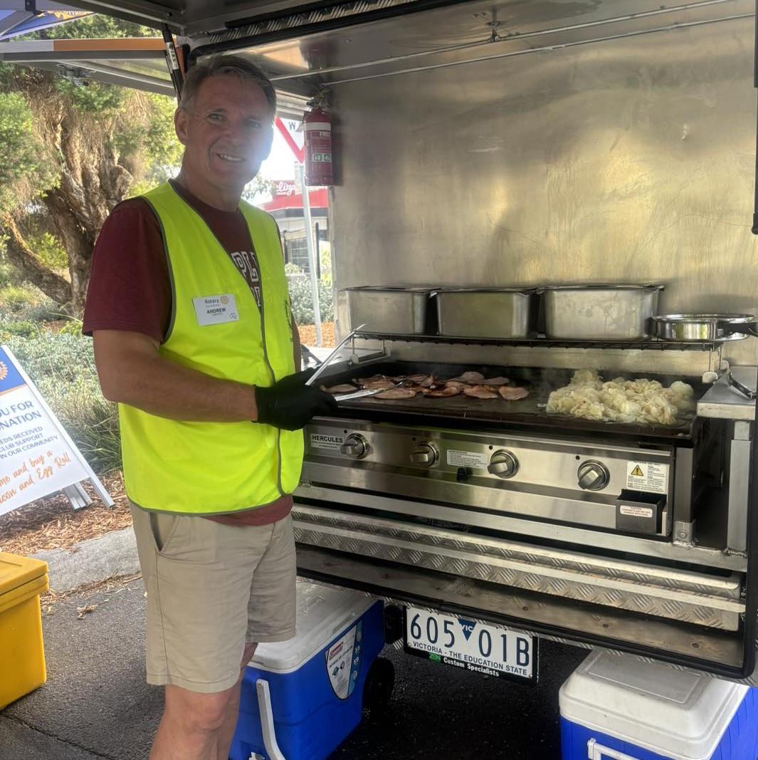 Andy joined Rotary Mount Eliza in October after being invited by Catherine Leonard. Since then, he’s been busy: from running sausage sizzles and bacon & eggs at the farmers market, to helping organise our Golf Day, unloading 50+ wheelchairs for children in developing nations, and even visiting a Cambodian art school we support.