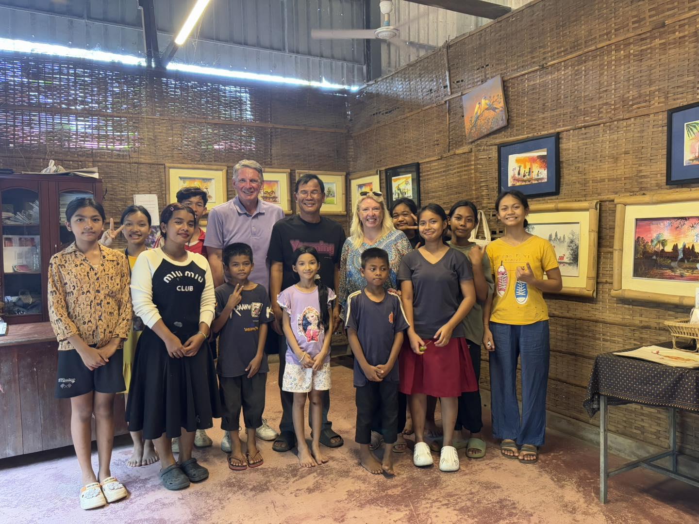 Supporting the International Committee, Andy and Yvonne visited Cambodia last year to personally deliver greeting cards produced by students at Opportunities for Development through Art (ODA). The cards, printed in Australia with club support, raise funds for the school. “It was wonderful to see the excitement on the children’s faces, talk with them in English, and bring a couple of their artworks home.”