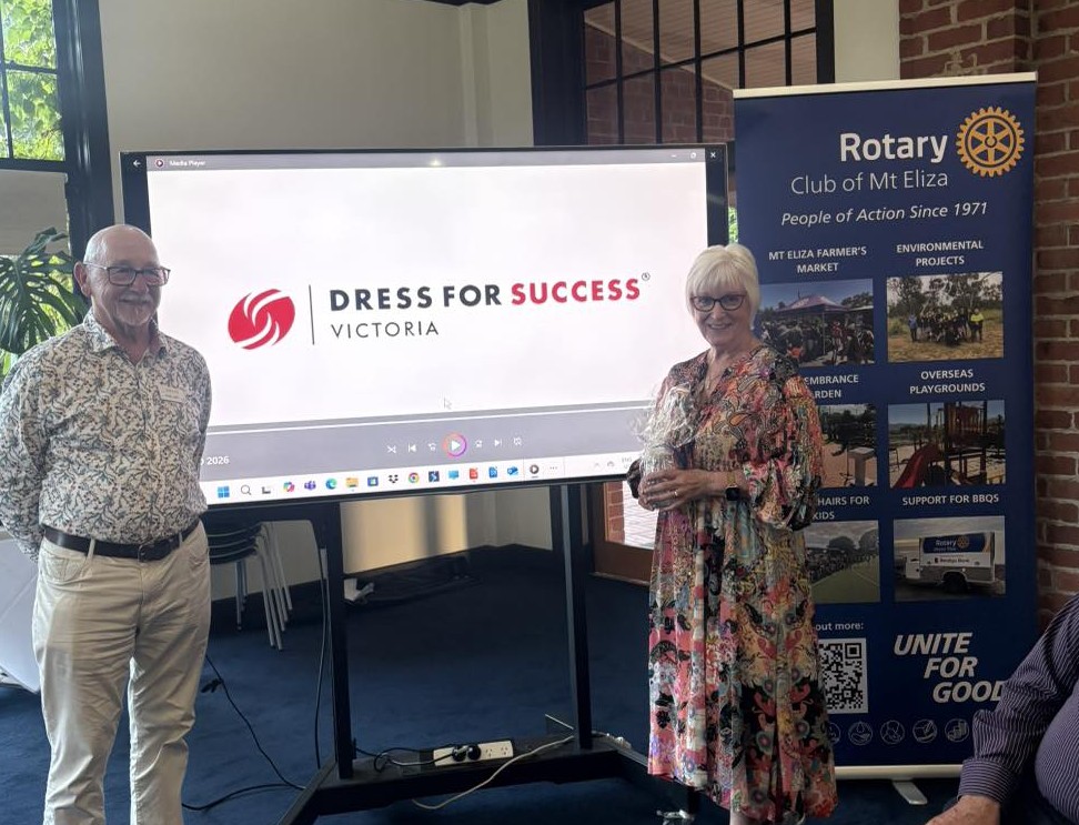 At a recent Rotary meeting, members had the privilege of hearing from Leonie Bailey, President of Dress for Success Victoria, who shared the powerful and deeply moving work her organisation does to support women experiencing vulnerability as they enter or re-enter the workforce.