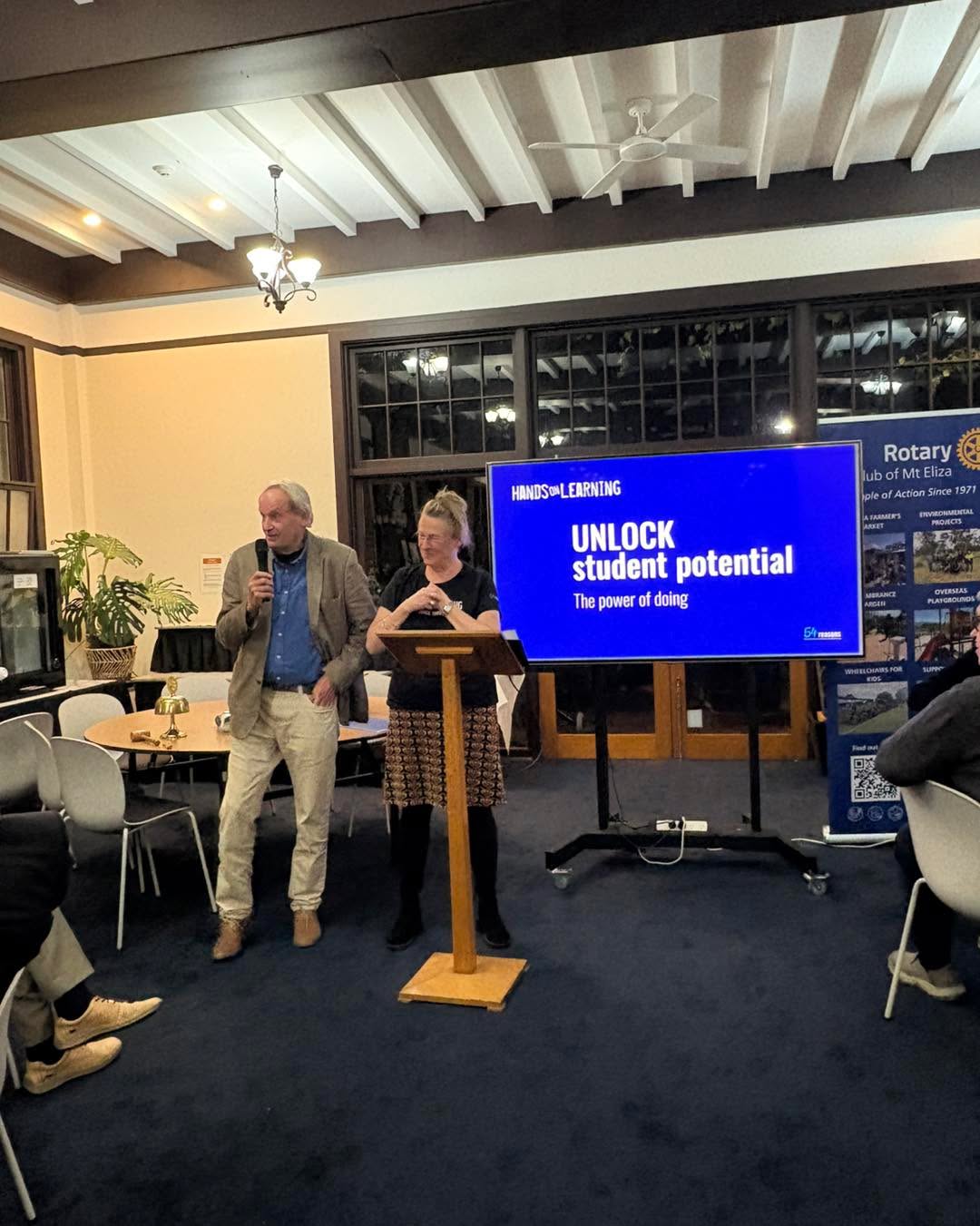 At our recent Rotary Mt Eliza meeting, we were privileged to hear from Lisa Vagg and Russell Kerr, founders of the Hands On Learning program — an innovation that began locally at Frankston High School over 25 years ago.